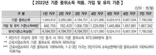 - 소득기준 : 근로활동, 근로 및 사업소득