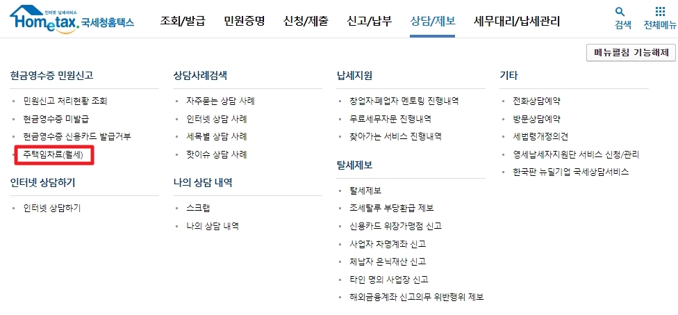 3. 주택임차료 현금영수증 발급 신청
