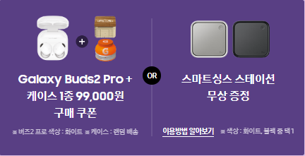 먼저 알아볼 곳은 삼성닷컴의 갤럭시 S23 사전예약 혜택입니다. 가장 핵심 혜택은 사전예약 기간에 구매를 하면 256GB 제품을 512GB로 업그레이드를 받을 수 있다는 것입니다. 256GB가 약 160만 원 정도이고 512GB가 약 172만 원으로 용량이 큰 제품인 만큼 제품 가격에도 차이가 있지만 사전예약기간에는 256GB의 제품 가격으로 512GB의 제품을 살 수 있는 것입니다. 뿐만 아니라 256GB 제품을 구매하면 갤럭시 버즈 2 프로+케이스 1종을 99,000원 구매쿠폰 혹은 스마트싱스 스테이션을 무상증정받을 수 있습니다.