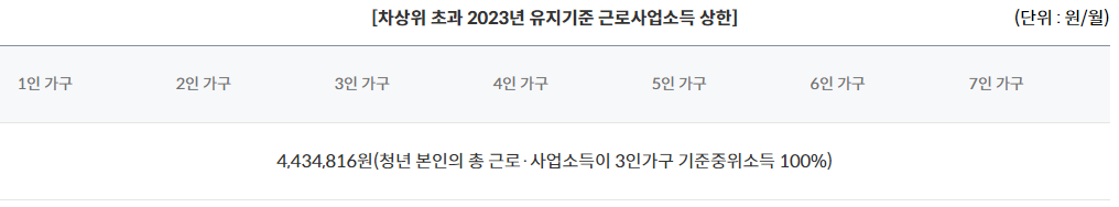 신청 월의 전월에 만 15세가 된 자~ 신청 월에 만 40세가 되는 자 - (기준중위소득 50% 초과~100% 이하) 신청 당시 만 19세 이상~만 34세 이하