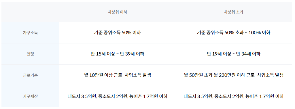 - (기준중위소득 50% 이하) 신청일 기준 만 15세 이상~만 39세 이하