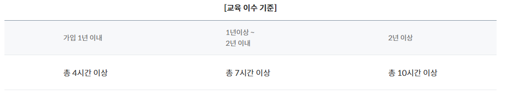 세 번째는 자립역량교육 이수입니다. 자산형성포털 및 자활정보시스템을 이용하여 청년내일저축계좌 가입 기간 동안 본인이 원할 때 총 10시간을 이수해야 합니다. 교육은 '자산형성포털> MY서비스> 교육관리> 필수교육'에서 자신이 원하는 강의를 듣고 이수하면 됩니다.